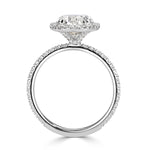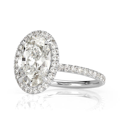 Dazzle your love with the incredible brilliance of this oval cut diamond engagement ring! The elegant design features a 3.01ct oval cut center diamond that is GIA certified at G-VVS2. It is incredibly white, bright, and practically flawless in clarity! The centerpiece has marvelous proportions of 11.05x7.98mm, and the added halo details adds so much more finger coverage. The beauty is set in a handcrafted platinum setting with round brilliant cut diamonds set down the shank. Give the girl of your dreams the ring of her dreams with this stunning oval cut engagement ring!