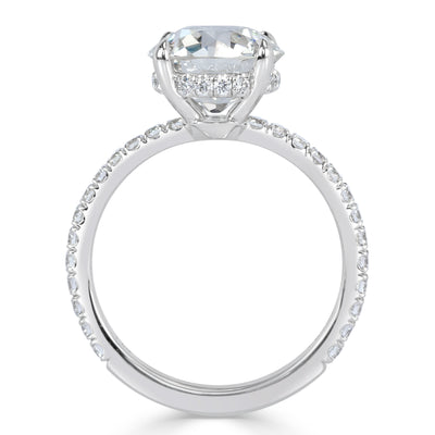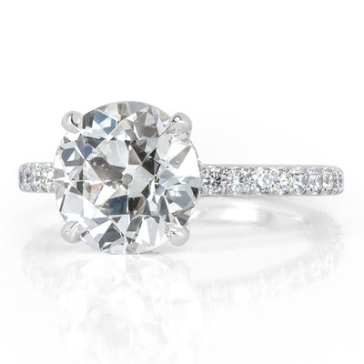 This enchanting old European cut diamond engagement ring is beyond elegant. This 3.10ct diamond is GIA certified at I-SI1. It is exceptionally beautiful, eye clean and immensely brilliant! Round brilliant cut diamonds decorate the ring shank and hidden halo of this stunning piece. Expertly created in platinum with delicate micro-pavé set diamonds throughout. This ring is magnificent!