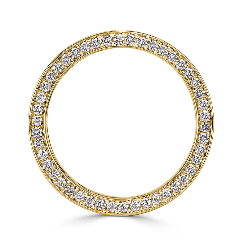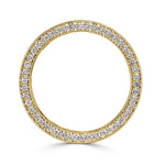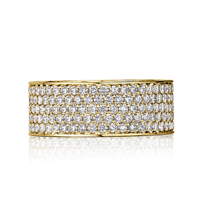 Make an unforgettable statement with this 3.85ct Round Brilliant Cut Diamond Eternity Band. Featuring five rows of hand-set micropavé diamonds across the front and side surfaces, this luxury eternity band offers unmatched brilliance from every angle. The colorless round brilliant diamonds sparkle with exceptional fire, meticulously set to create a continuous and dazzling circle of light. A bold and elegant expression of love, this wide diamond eternity wedding band is ideal for milestone occasions or as a one-of-a-kind addition to any fine jewelry collection.