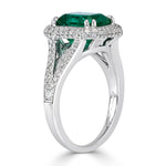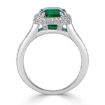 This alluring emerald and diamond ring is the definition of ultimate refinement. The center stone features a stunning 2.90ct emerald cut emerald. The green hue, tone, and saturation of this emerald is the perfect combination and sought out for. It is set in a finely detailed 18k white gold setting accentuated by shimmering round brilliant cut diamonds certified at top color gradings of E-F, VS1-VS2. The handcrafted split shank design allows the center emerald to pop with just the right amount of finger coverage. No eyes will be able to resist the mesmerizing beauty of this one-of-a-kind emerald and diamond ring.