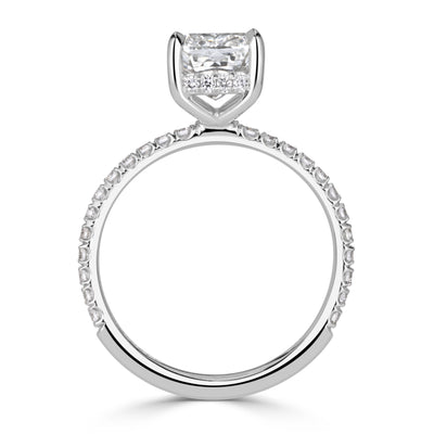 Behold the enchanting allure of our 3.97ct Cushion Cut Diamond Engagement Ring. Set in a stunning micropavé diamond setting crafted in platinum, the cushion-cut center diamond sparkles brilliantly, capturing your love's radiant essence. This extremely rare 3.52ct elongated cushion cut diamond is truly one-of-a-kind, measuring at huge proportions of 11.11 x 6.96mm. Delicate pave diamonds adorn the band, adding a touch of sophistication. Meticulously crafted and designed to reflect everlasting commitment, this ring embodies the beauty of your journey together. A symbol of enduring love and breathtaking elegance.