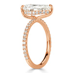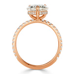 This dreamy pear shaped diamond engagement ring will make her a very happy lady. It features a remarkable 3.53ct pear shaped center diamond GIA graded at J-SI1. It faces up white and is eye clean. The shape faces up a large, plump pear and the fiery sparkle is top notch. This stunner measures at an incredible proportion of 14.03x8.45mm and faces up more like a 4ct+ center diamond. It is an amazing value! It is also graded at excellent in polish and symmetry. The three and a half carat pear is perched on top of a hidden halo basket design with accents of sparkling round brilliant cut diamonds. Additional diamonds are also set just past halfway down the shank. She'll fall in love with you all over again when you present her with this stunning pear shaped diamond engagement ring.