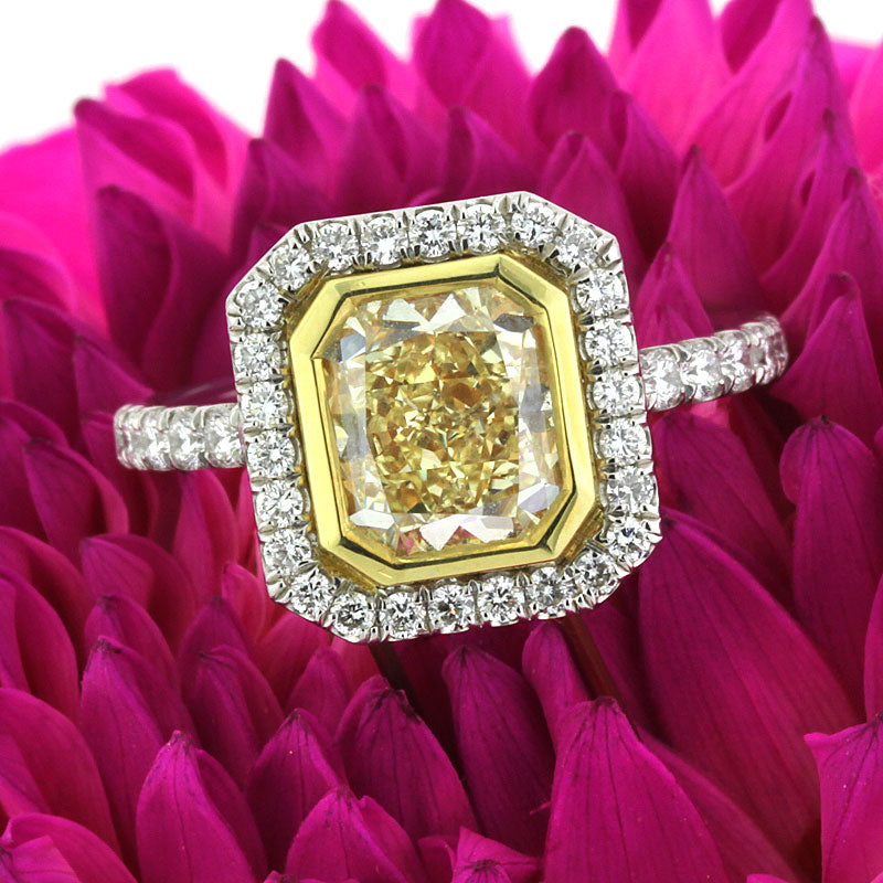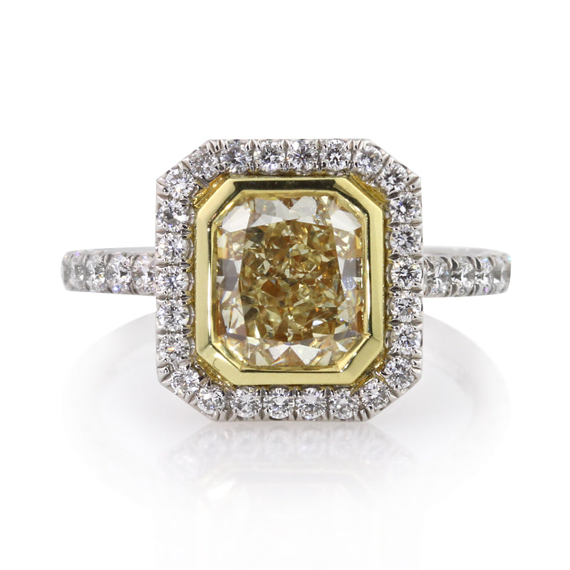 3.27ct Fancy Yellow Radiant Cut Diamond Engagement Ring