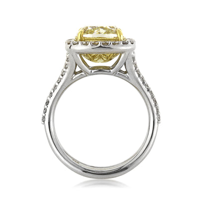 4.28ct Fancy Light Yellow Cushion Cut Diamond Engagement Ring