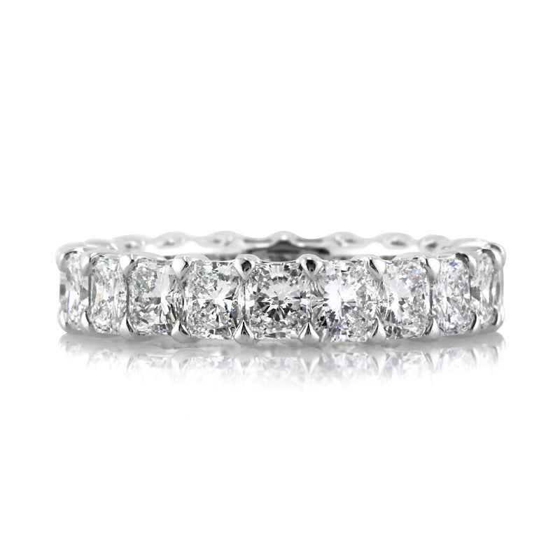 Be utterly impressed with this exquisite radiant cut diamond eternity band. The 18k white gold setting features 4.35ct of well matched radiant cut diamonds. Each stone is hand selected and set by our master jeweler. Enjoy all the compliments that will be pouring in with this incredible eternity band on your finger.