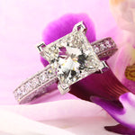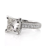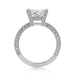 This breathtaking princess cut diamond engagement ring will astonish you with its size, brilliance and beauty! The gorgeous 3.04ct princess cut center diamond is EGL Certified, one of the leaders in diamond grading, at H-SI2. It faces up white and the inclusion is white and blends in giving you an eye clean look. The cut of this diamond is really amazing. The facets are so crisp and beautiful and it gives off a fire and brilliance that will mesmerize you! The custom made platinum setting features round diamonds pave set on all three sides of the shank with beautiful milgrain detail. The center prongs are studded with round diamonds throughout as well. It is stunning from every angle! This unique piece is sure to be cherished forever!