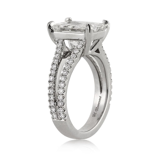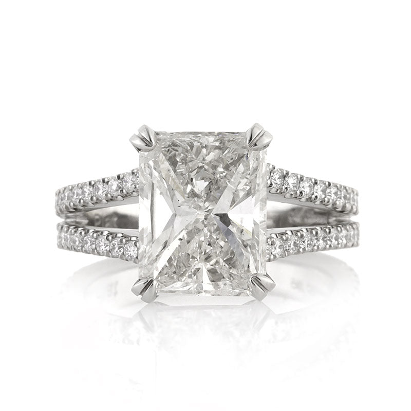 This one of a kind radiant cut diamond ring will astonish you with its spectacular size, cut, quality and design! The mesmerizing 4.00ct radiant cut center diamond is EGL certified, one of the leaders in diamond grading, at G-SI2. The diamond is near colorless and the inclusions are predominantly white, which blend in with the diamond and give you an eye clean look. It is accented by a split shank set with two rows of round diamonds in a micro pave setting. The ring is made in high polish platinum. This piece gives you tremendous value for the size and quality! You will love and cherish it!