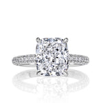 This exquisite 4.83ct Cushion Cut Diamond Engagement Ring is sure to turn heads. Featuring a stunning 4.17ct cushion cut center diamond, GIA certified at D color and VS1 clarity measuring at 10.17 x 8.6mm; this stunning ring is a testament to the enduring beauty of true love. It is  expertly handcrafted in platinum with glittering diamond micropavé details to captivate hearts. Its exceptional sparkle and brilliance make it the perfect symbol of your everlasting commitment!