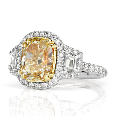 4.83ct Fancy Light Yellow Cushion Cut Diamond Engagement Ring