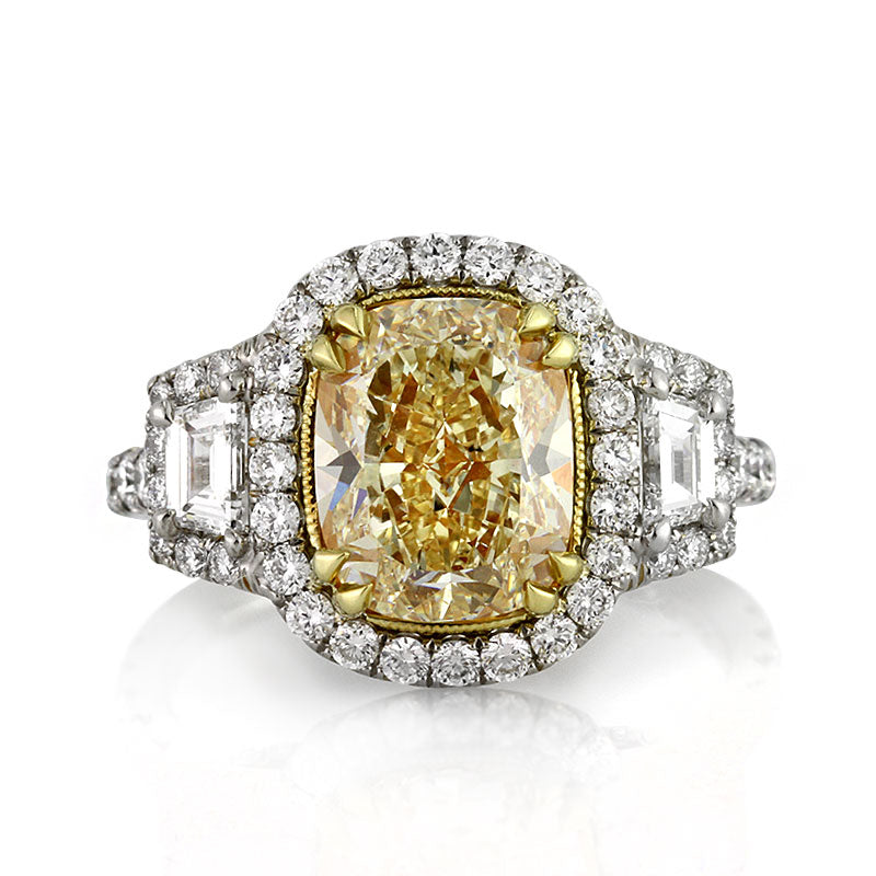 4.93ct Fancy Light Yellow Cushion Cut Diamond Engagement Ring