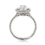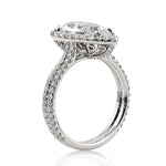This astonishing pear shape diamond ring will mesmerize you with its magnificent quality, size, design and remarkable brilliance! It all starts with the gorgeous 3.09ct pear shape diamond set in the center. It is AGS certified (one of the leaders in diamond grading) at E-SI2, exceptionally white and extremely beautiful. The cut is one of the most beautiful you will see in a pear dhape! The custom-made setting features a halo of round diamonds set around the stunning center and two rows of round diamonds set down the shank in a micropave setting. It showcases all the diamonds beautifully with hardly any metal showing! The magnificent center basket features handmade filigree accent and round diamonds studded on the center connectors. It is breathtaking! You will cherish this piece forever. Sure to become a family heirloom!