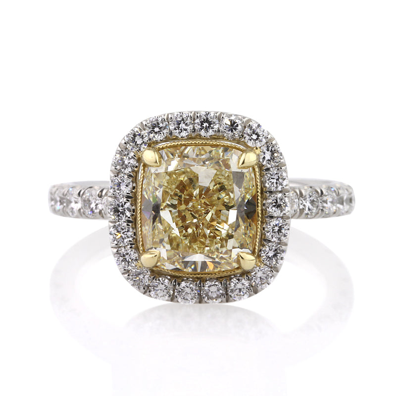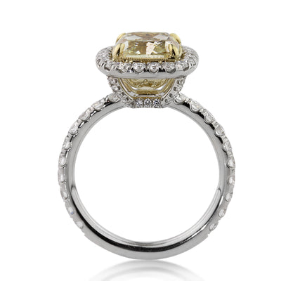 4.48ct Fancy Yellow Cushion Cut Diamond Engagement Ring