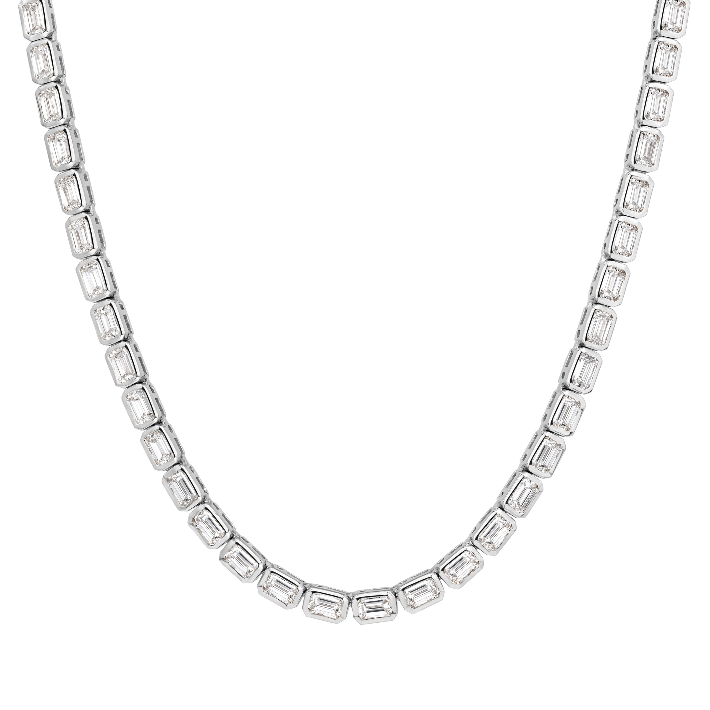 5.26ct Emerald Cut Diamond Bezel Set Tennis Necklace