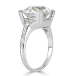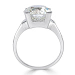 This breathtakingly rare antique old european cut diamond engagement ring features a ravishing 5.27ct old european cut. It is GIA certified at J-VS1, facing up beautifully white and perfectly eyeclean. It is very difficult to find an antique cut diamond with a superb clarity grade such as this beauty. It is accented with a stunning combination of trapezoid and baguette cut side diamonds handset on either side of the center stone. The platinum shank is also styled with handset feminine detailed designs. This piece is truly one of a kind, just like the love of your life.