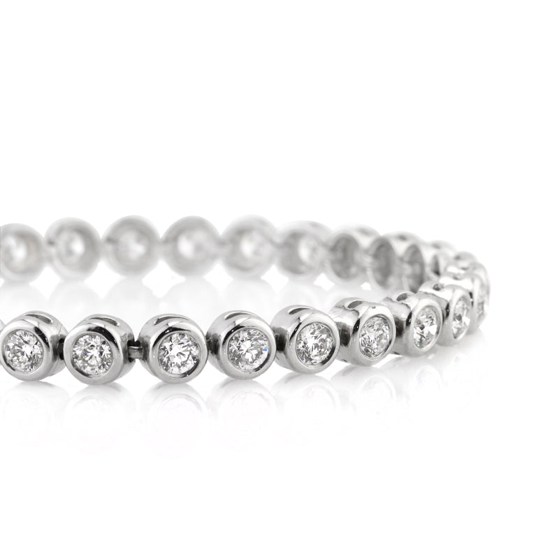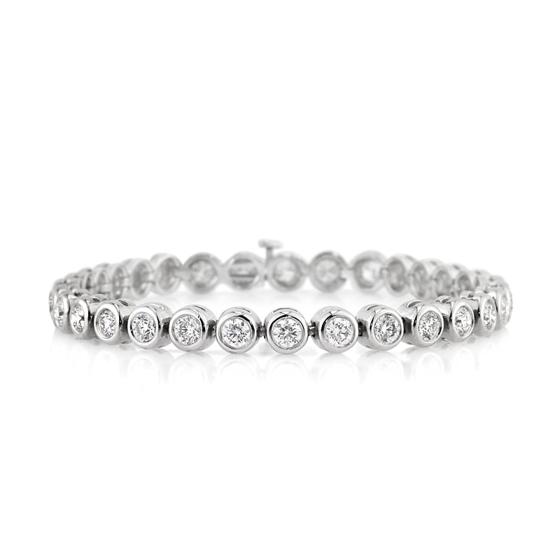 This elegant round brilliant cut diamond tennis bracelet has an exceptional design! Each one of the beautiful round diamonds is bezel set to perfection. This tennis bracelet features 6.25ct of exceptionally white and clear round diamonds that sparkle tremendously! You will love how it looks on!