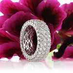 This spectacular three-row diamond eternity band is impressive on the hand and makes a big statement. It showcases 6.50ct of round diamonds set in our one-of-a-kind eternal micro pavé setting on 18k white gold. The sides of the ring are also set with diamonds in an eternity style. Indulge in sparkle that will last you a lifetime.