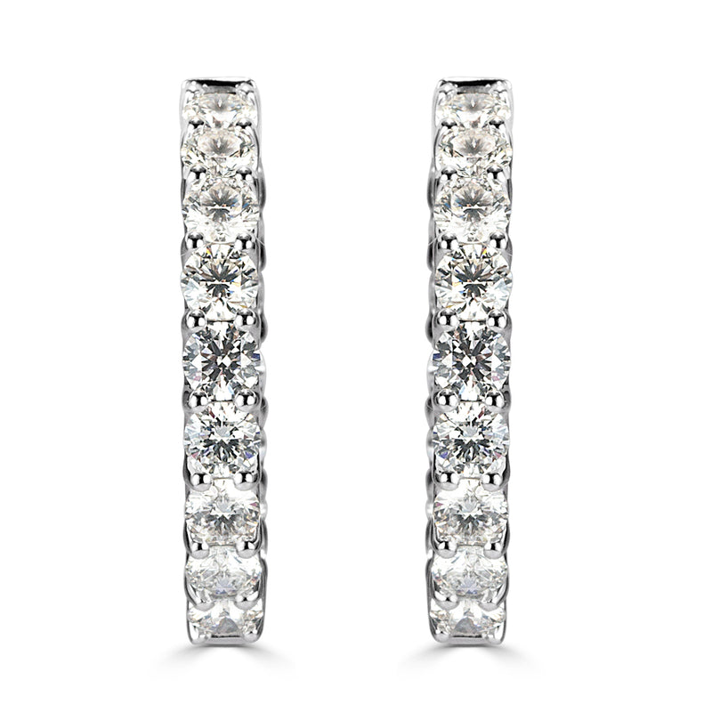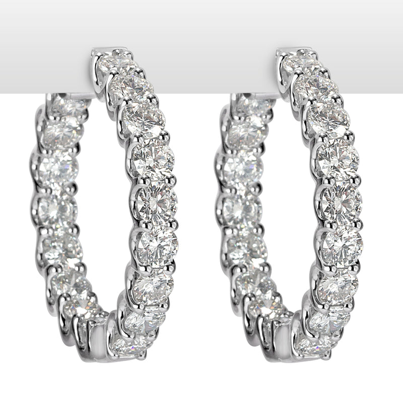 Adorn your ears with extraordinary sparkle with this pair of seven carat diamond hoops. The 14k white gold, ”U” prong setting is set with colorless, eye clean diamonds.