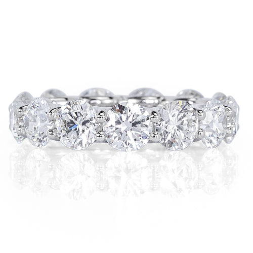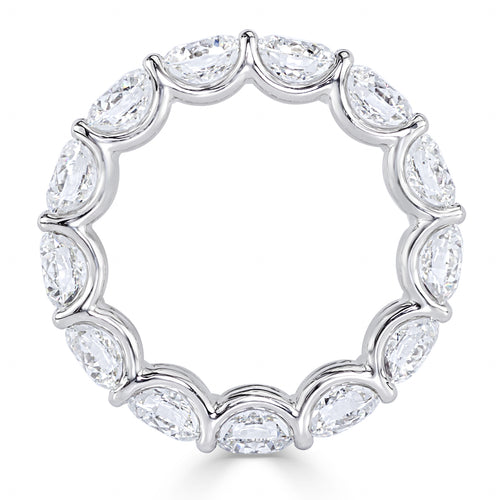A seamless channel setting secures alternating princess and baguette cut diamonds, delivering clean lines, geometric precision, and exceptional sparkle. Each stone is carefully matched for color and clarity, resulting in a visually striking and balanced composition.