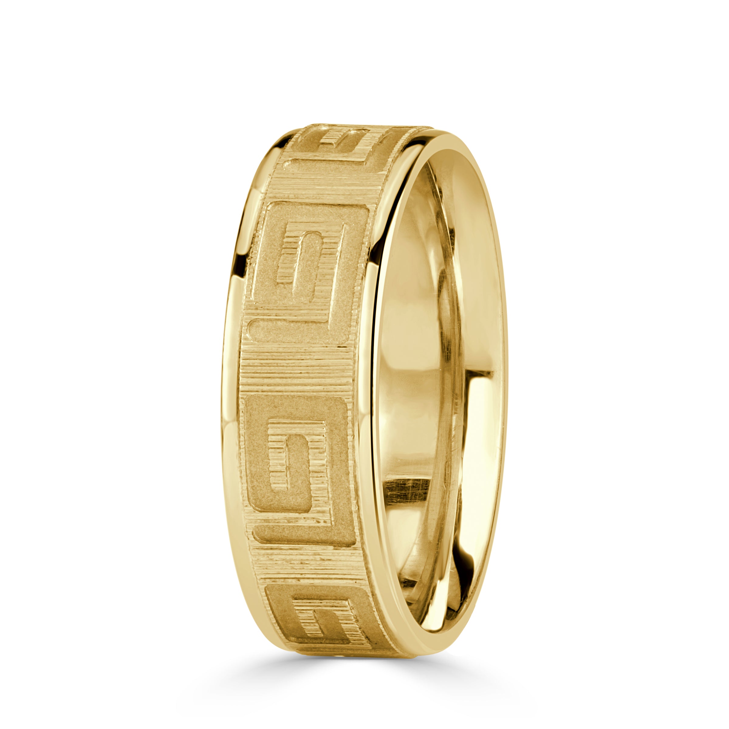 Rooted in classical elegance, this Men’s Greek Key Wedding Band honors ancient symbolism with modern craftsmanship. The iconic Greek key motif is etched in a raised relief, symbolizing infinity, unity, and the eternal journey of life—making it a deeply meaningful choice for a wedding ring.