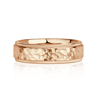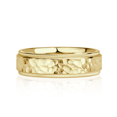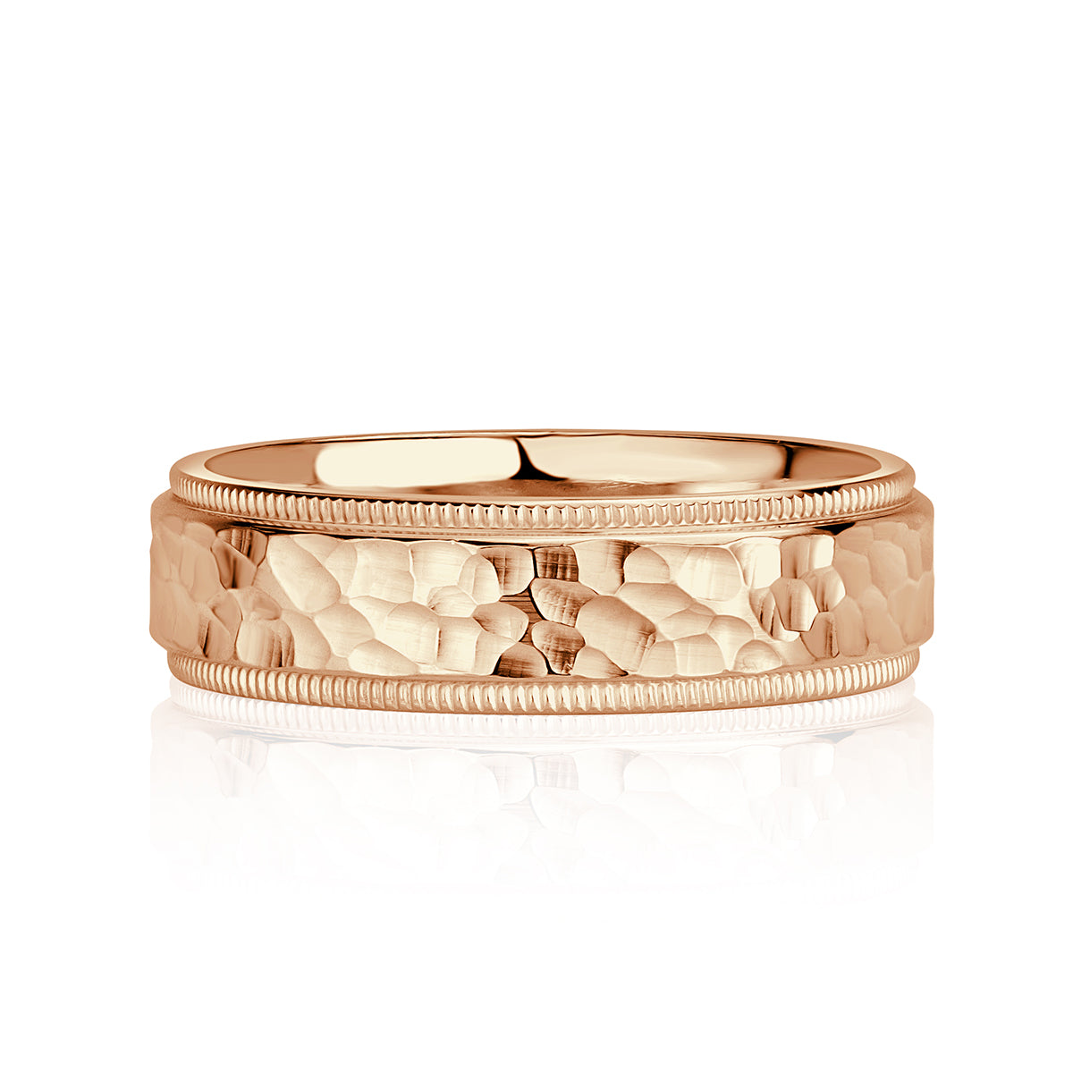 With superior craftsmanship, a range of precious metal options, and standout milgrain detailing, this ring combines durability, comfort, and aesthetic appeal. Ideal for weddings, anniversaries, or as a meaningful gift, the Men’s Hammered Finish Milgrain Edge Wedding Band is a testament to enduring love and style.