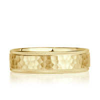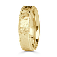 Hammered Finish Milgrain Step Edge Men's Wedding Band 6mm