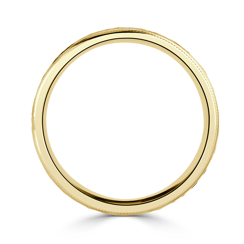 Perfect for weddings, anniversaries, or milestone gifts, the men's hammered milgrain step edge wedding band blends classic artistry with modern design. It's not only a ring, but a statement of character, commitment, and craftsmanship.
