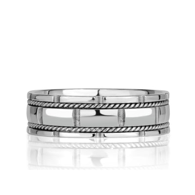 Brick Design Rope Groove Men's Wedding Band 7mm