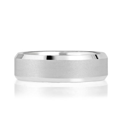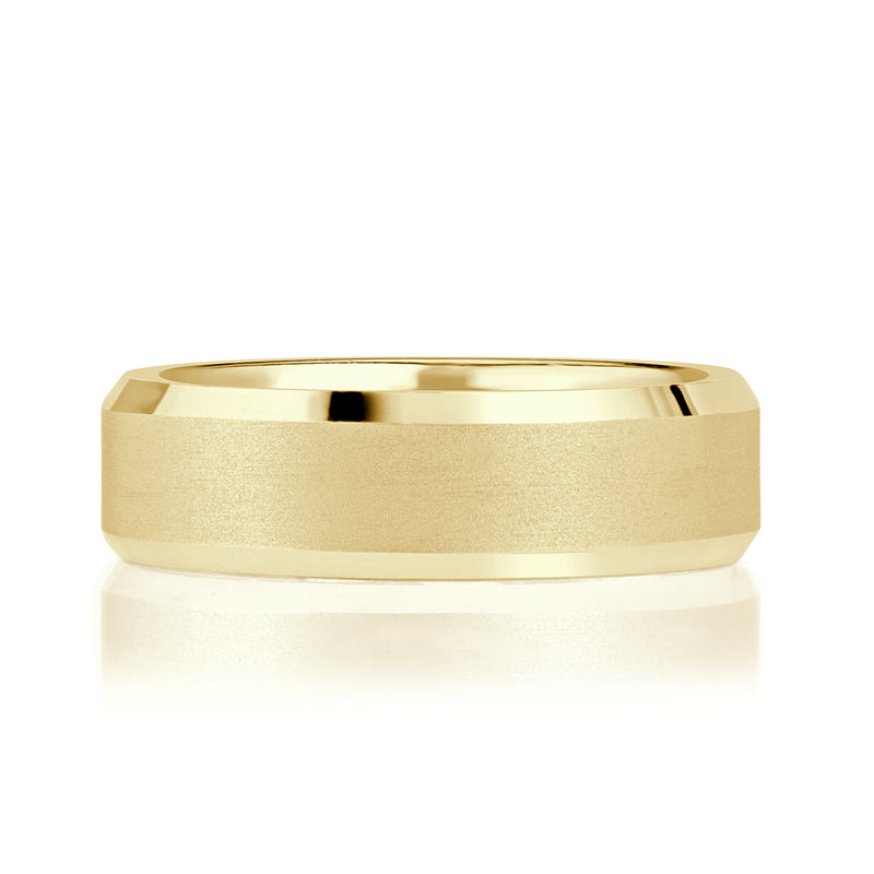 Choose the Men’s Sandblasted Beveled Edge Wedding Band for a wedding ring that marries bold modern texture and traditional craftsmanship. With its carefully curated combination of sandblasted robustness, polished precision, and ergonomic comfort, it’s a timeless choice built to symbolize commitment and everyday elegance.