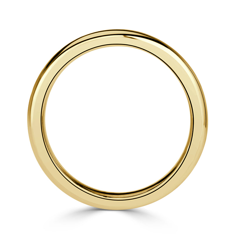 Crafted to perfection, this band is available in premium metals: 14K or 18K yellow, white, and rose gold, as well as Platinum. Its comfort-fit rounding ensures ease in daily wear; the slim 3mm width provides just enough presence on the finger without overpowering. Every curve and surface is polished by artisan hands, reflecting a dedication to clean geometry and refined workmanship.