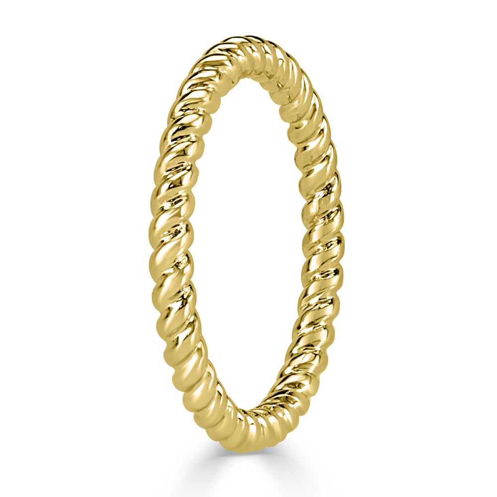 This beautiful band is subtle and unique. Created with a twisted rope design that is a great addition to any ring stack. It pairs wonderfully with engagement rings and has enough presence as stand-alone piece. It is a stunning little ring.